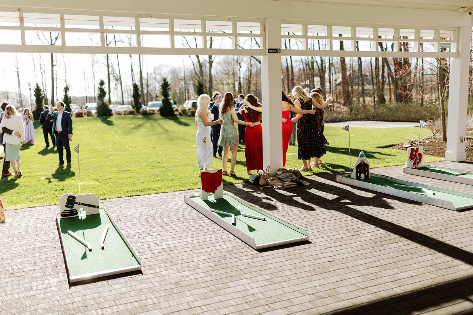 Versatile covered space ideal for ceremonies, cocktail hour, open-air dancing, lawn games, photo booths, artists and soft seating.